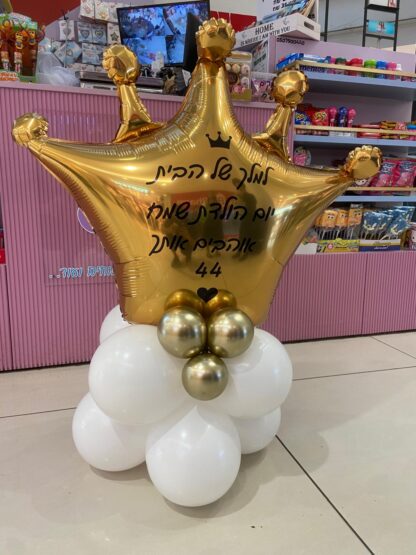 כתר ענק על מעמד מבלונים מעוצב כולל הקדשה אישית